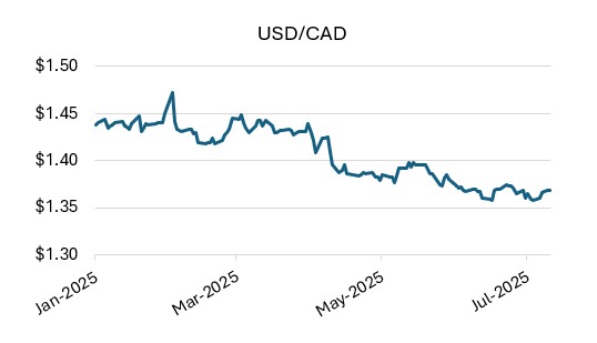 Figure 1. CAD has appreciated versus USD year-to-date