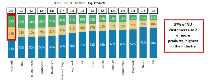 Figure 1: Nubank leads the way in product penetration (red bar)
